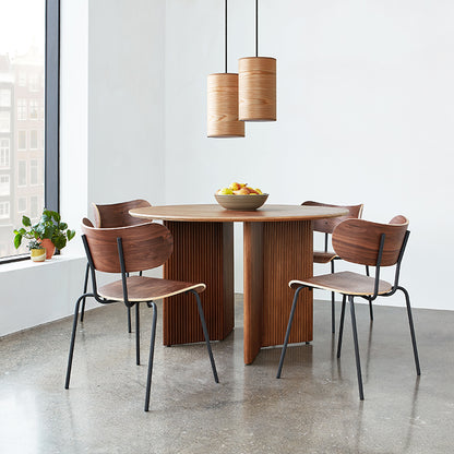 Blending a mid-century design approach with the ease of contemporary living, the Bantam Dining Chair embodies simple sophistication with a sculptural ethos that welcomes you to sit and stay awhile. Delicate steel legs support a formed-plywood seat and back that ergonomically support the body with gentle curves for all-day comfort. Sturdy, yet lightweight, this original design can be stacked for storage and brought out for dinners or events. All you have to do is sit back and appreciate the craftsmanship and versatility of this modern marvel. An instant classic, Bantam is available in Blonde Ash, Black Ash and Walnut.