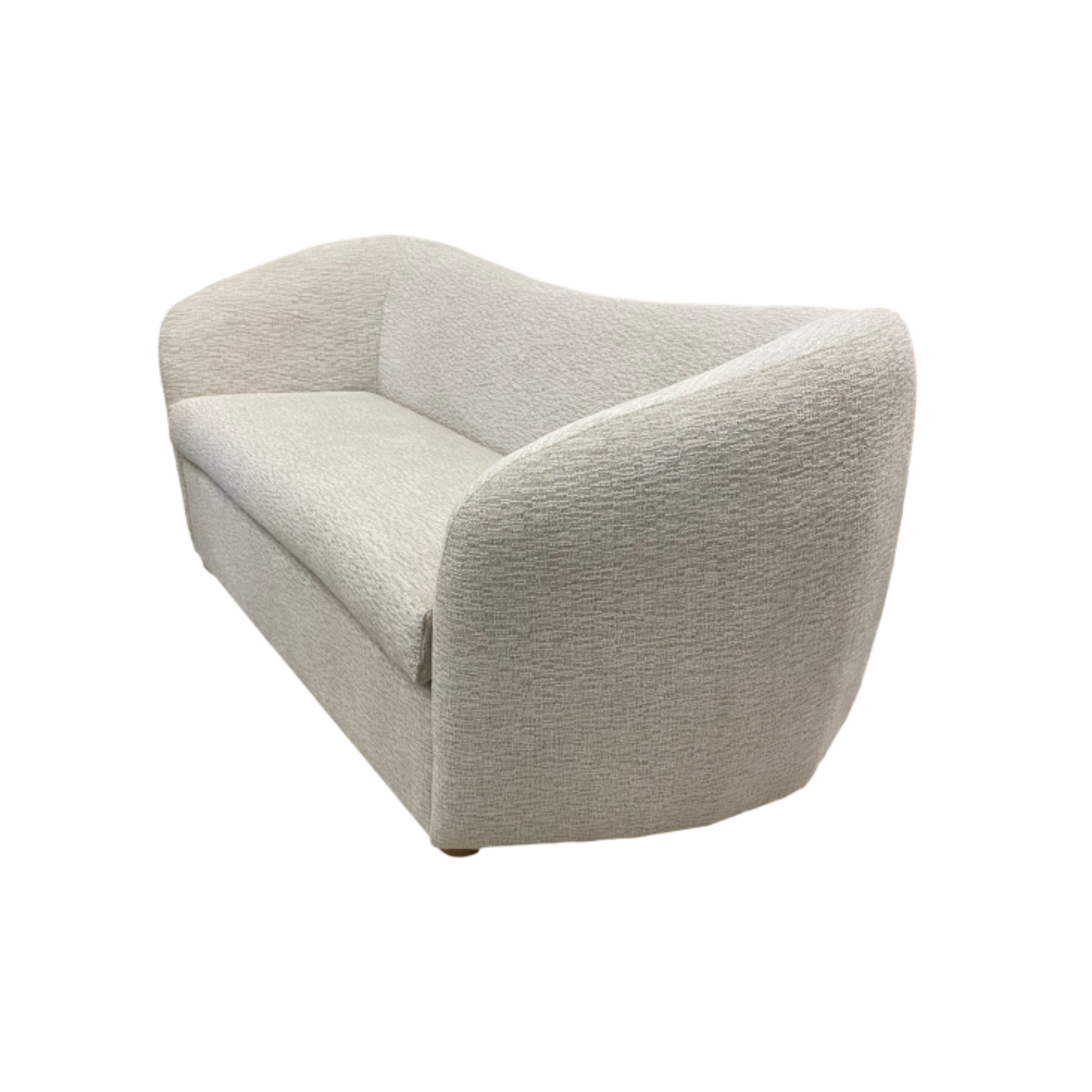 Elegant contemporary curved back sofa is soft and comfortable and made to order in hundreds of beautiful and high performance fabrics to suit your decor.