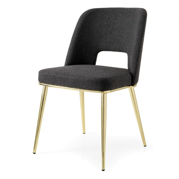 The FOYER upholstered chair offers a sense of comfort and relaxation to anyone who sits in it. This is thanks to its enveloping, padded shell made of curved multilayered wood and the soft seat supported by an elastic strap structure. It rests on an elegant four-legged metal base and comes in shades that are a faultless match to the seat shell finish in fabric or genuine leather. Its sophisticated design and luxurious materials make it a perfect addition to a variety of interior styles, from modern lounges to contemporary living rooms. The chair’s sleek lines and refined finishes add a touch of elegance and ensure it integrates seamlessly into any chic, stylish setting.