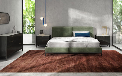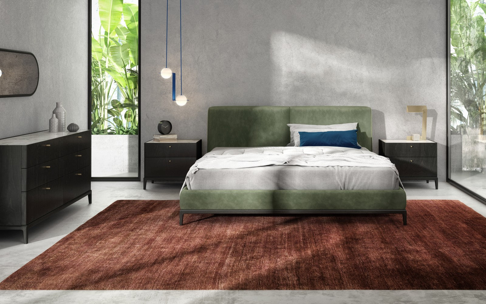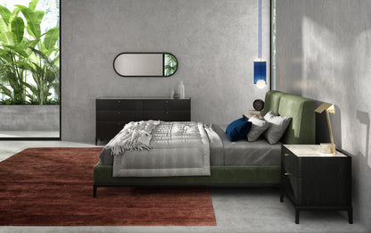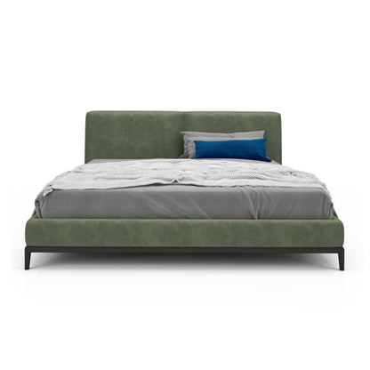 With its delicate round wooden legs, plush upholstery, and thoughtful structural details, the Hemrick bed would almost be at home in the living room. It’s finished on all four sides, with a fully removable cover over the upholstered platform and comfortable headboard. The headboard features an elegant fell seam and central tuft to highlight its generous padding. Plus, the angle is perfect for reading in bed.