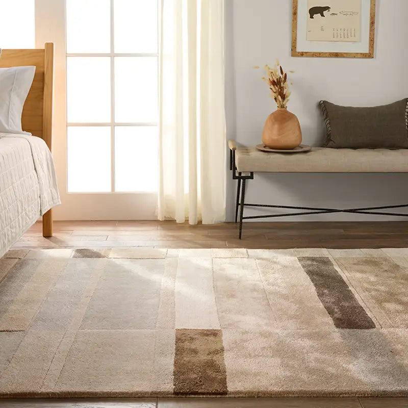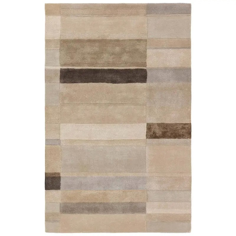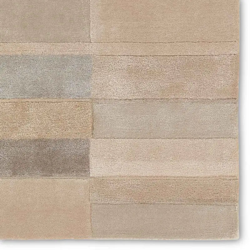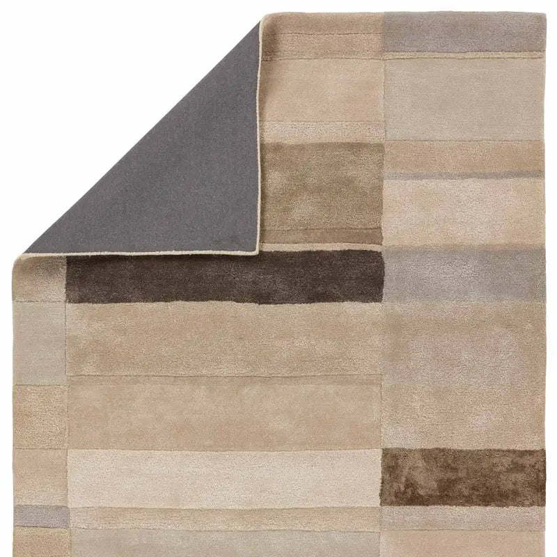 The sleek and angular Iconic collection infuses interiors with bold colorways and modern style. A playful geometric motif and on-trend tan, gray, cream, and beige colorway come together to form the quirky Berkay rug. Hand tufted of viscose and New Zealand wool, this fresh accent boasts cut and looped pile for added texture and dimension.