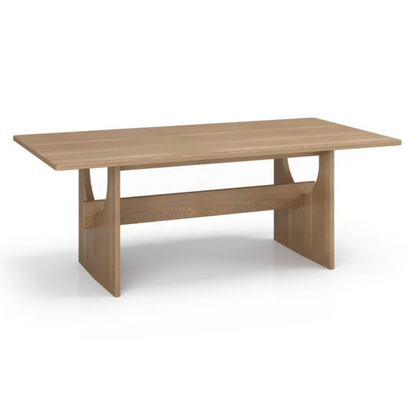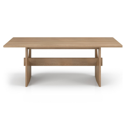 Kobe rectangular table, made from solid white oak, combining simplicity and sturdiness. Its sleek design, featuring a solid structure and minimalist lines, highlights the natural beauty of the wood. Ideal for a modern dining room, it draws inspiration from Japanese and Scandinavian influences, bringing both elegance and functionality to your space.