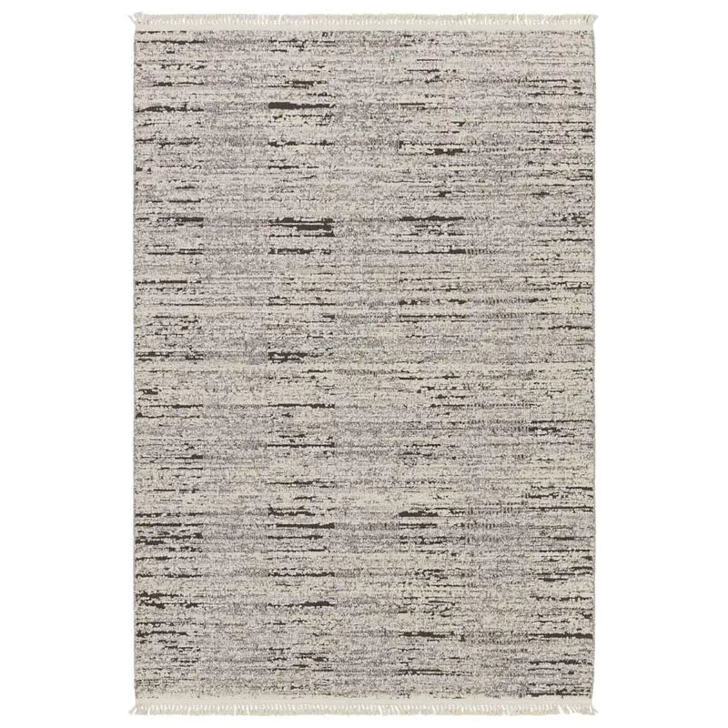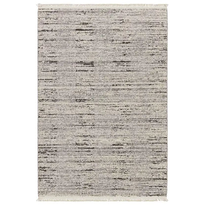 The Lore collection introduces an assortment of modern Moroccan motifs and unique texture that grounds spaces with statement-making style. The Duna area rug features a distressed striped design, cut and looped pile, and cream, fringe. The contrasting neutral tones of gray and cream offer the perfect anchor to contemporary design. This indoor rug thrives in medium and low traffic spaces of the home such as bedrooms, dining areas, formal living rooms, and guest areas.